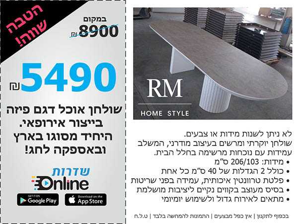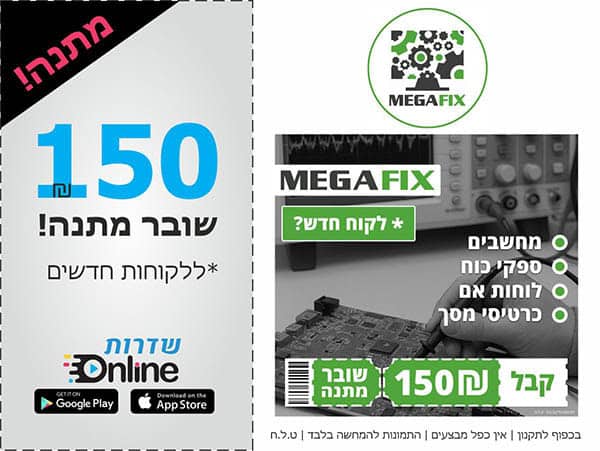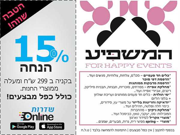חובה לציין קוד קופון 1718 בהזמנה טלפונית או איסוף עצמי. עד גמר המלאי. בכפוף לתקנון. ט.ל.ח