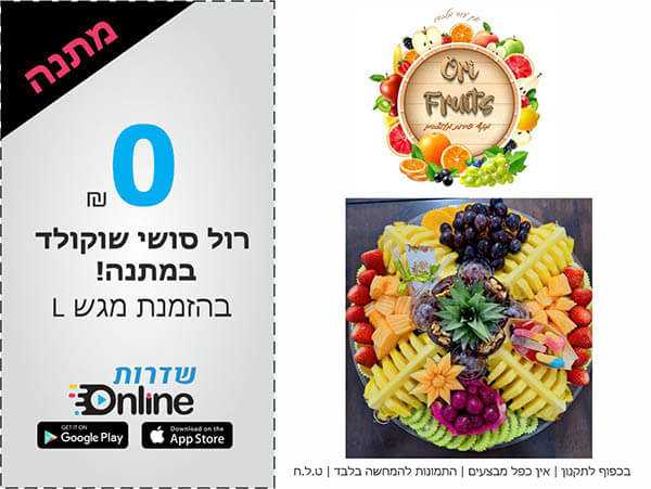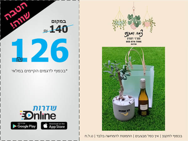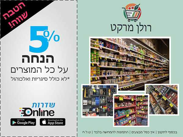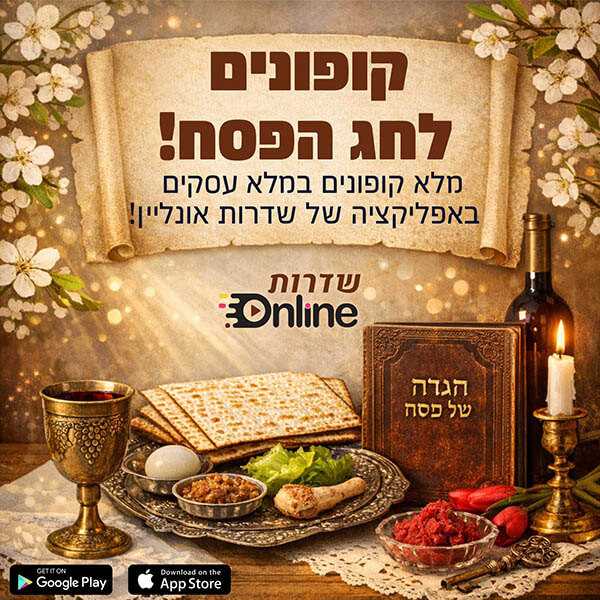 בהצגת הקופון מתוך האפליקציה של שדרות אונליין בלבד. עד גמר המלאי. בכפוף לתקנון. ט.ל.ח
