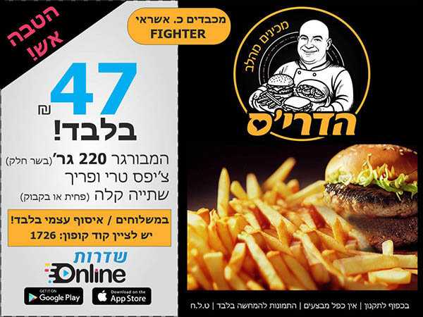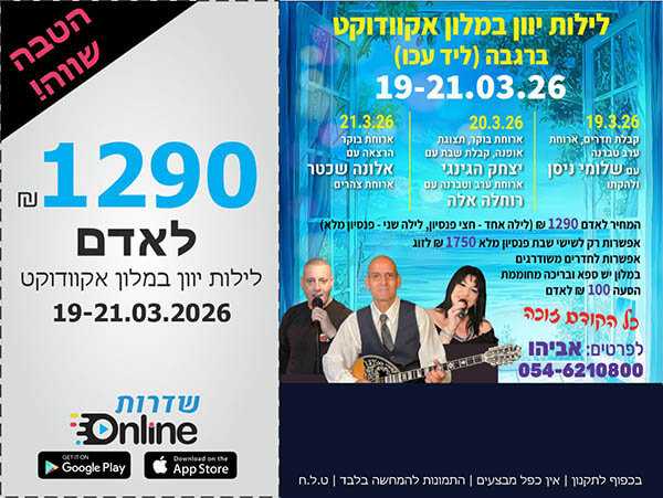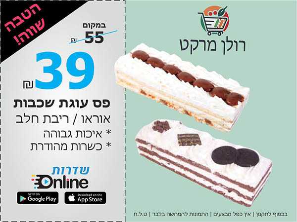 חובה לציין קוד קופון 1726 בהזמנה טלפונית או איסוף עצמי. עד גמר המלאי. בכפוף לתקנון. ט.ל.ח