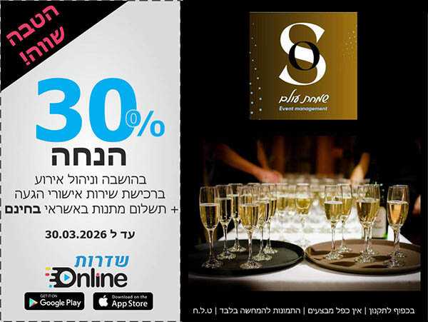בהצגת הקופון מתוך האפליקציה של שדרות אונליין בלבד. עד ל 30.09.25 או עד גמר המלאי. בכפוף לתקנון. ט.ל.ח