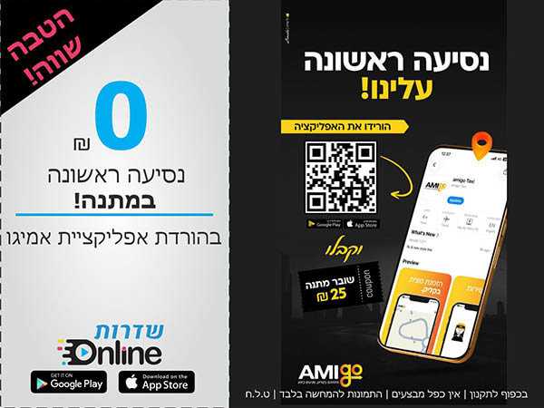 למימוש בהורדת אפליקציית אמיגו. עד גמר המלאי. בכפוף לתקנון. ט.ל.ח